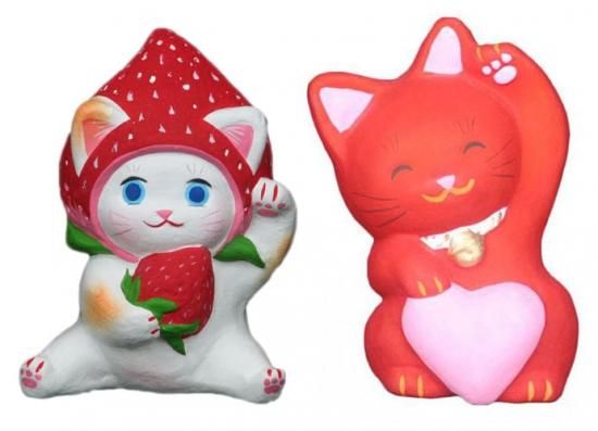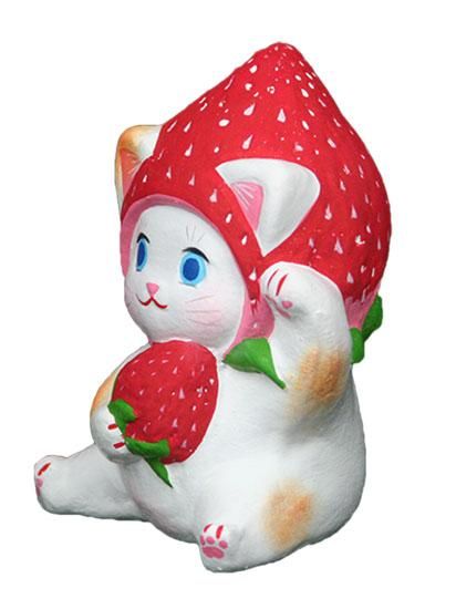 いちごちゃん(大きさ約10センチ)あかねこちゃん(大きさ約11センチ)招き猫 土人形 置物 風水グッズ 縁起物