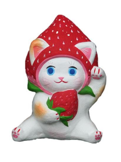 レモンちゃん(大きさ約10センチ)いちごちゃん(大きさ約10センチ)招き猫 土人形 置物 風水グッズ 縁起物